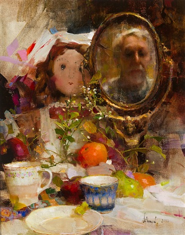 - On the blank sheet of paper, carefully draw the outlines of the objects in this painting. Use what you learned from the two videos above to draw as accurately as you can. Measure with your pencil, and try to make the objects in your drawing exactly the same size as they are in the painting that you are copying. Do not shade your drawing. Sit in front of a table, and hold the drawing board on your lap and lean it up against the table.
